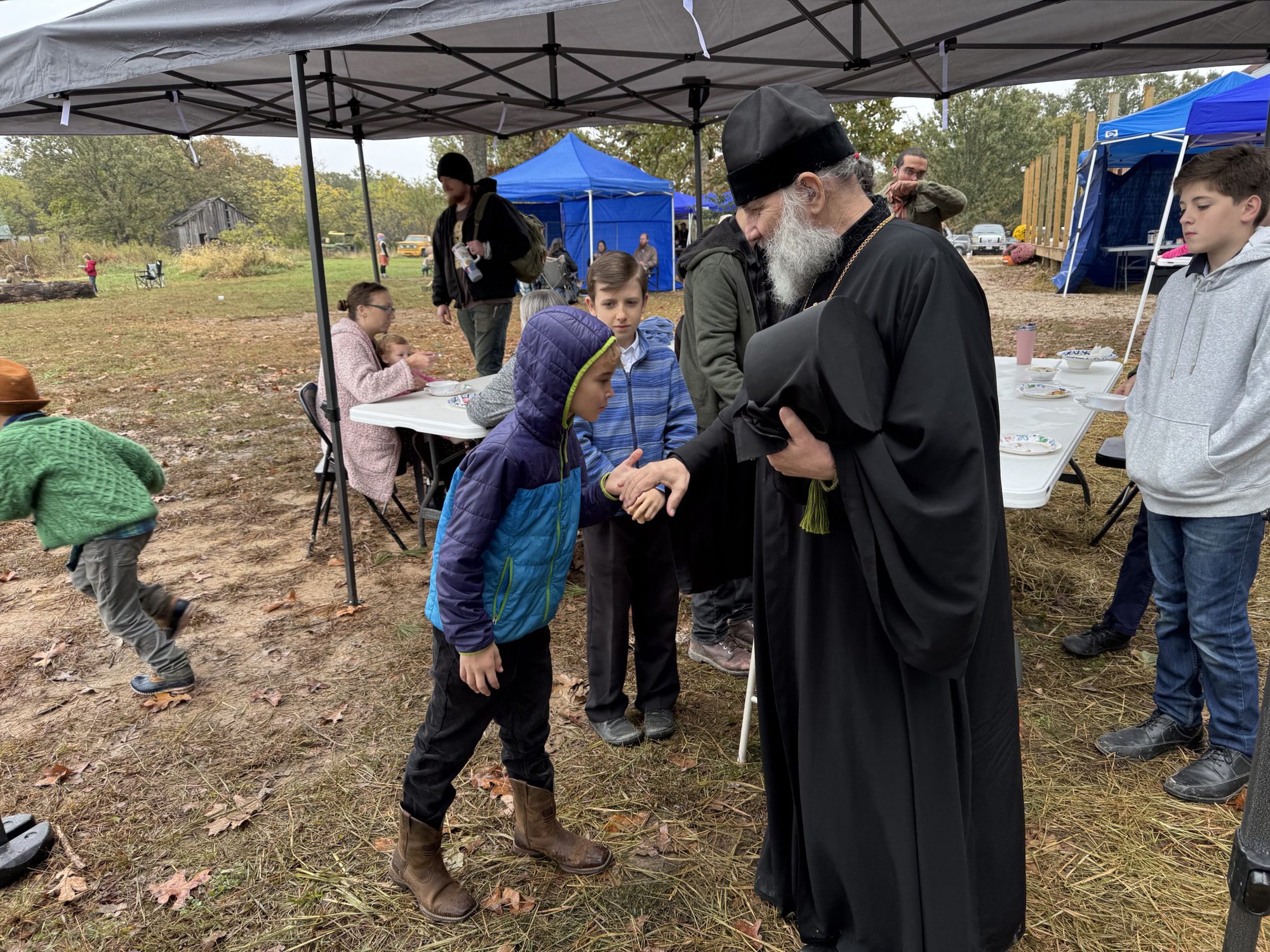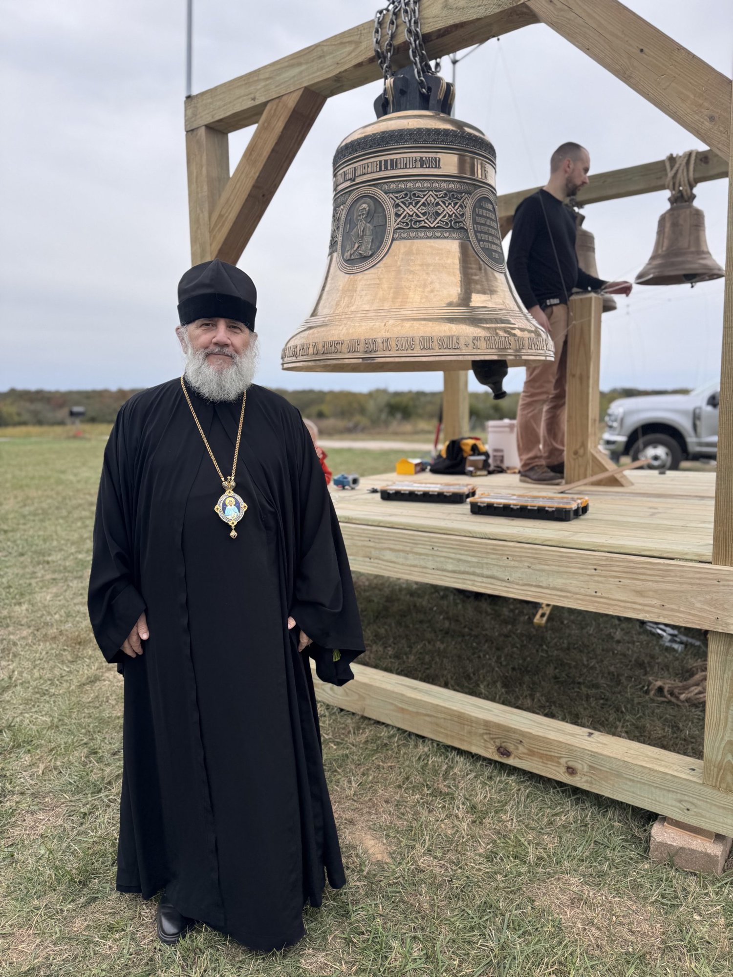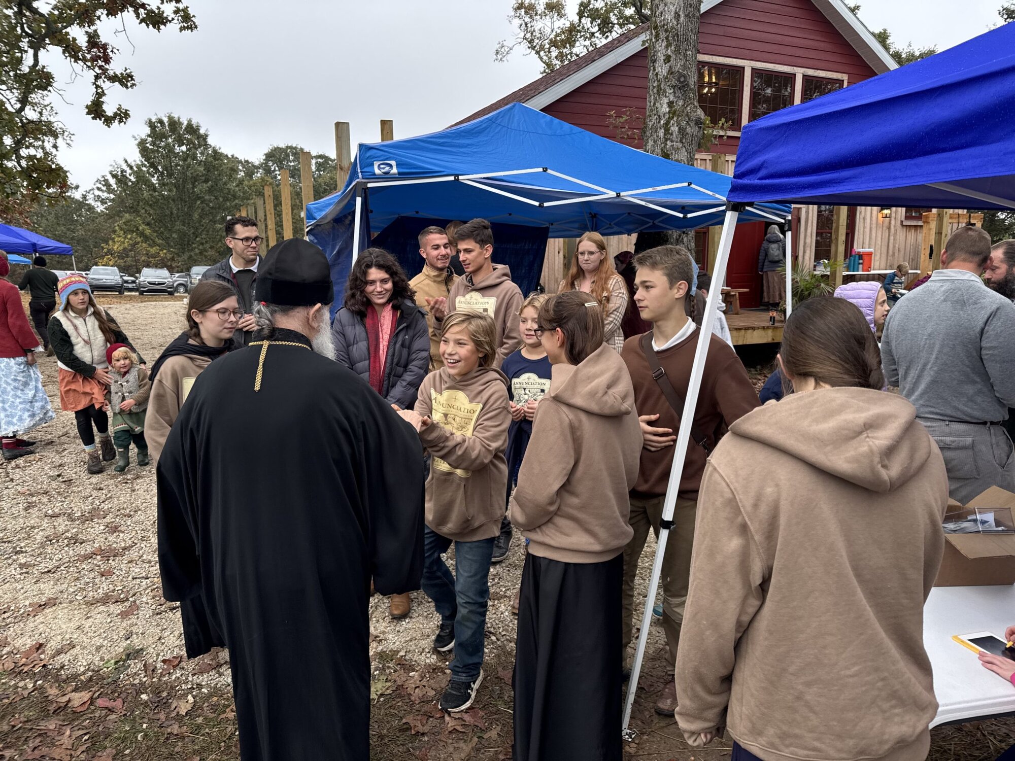 Annunciation Orthodox Church recently completed and moved into a much larger building for divine services and fellowship which provided room for the event this weekend as well. At the fall retreat, a set of Orthodox bells borrowed from St. Thomas Orthodox Church in Springfield, MO were set up and rung by professional bell ringer, Constantine Stade, for divine services and in a demonstration. Plans for a new limestone bell tower at Annunciation were also revealed during the event.